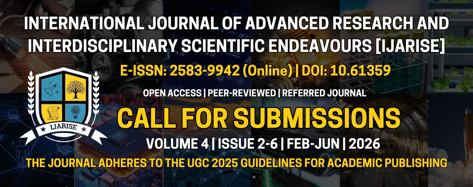 The International Journal of Advanced Research and Interdisciplinary Scientific Endeavours (IJARISE) (E-ISSN: 3048-7021) is an international, peer-reviewed, open-access scholarly journal committed to publishing high-quality research across diverse academic disciplines. The journal provides a dynamic platform for undergraduate and postgraduate researchers, early-career scholars, and experienced academicians to disseminate innovative and impactful research. IJARISE publishes original research articles, review papers, and technical contributions in the fields of science, engineering, technology, management, and interdisciplinary studies. The journal strongly emphasizes the integration of multiple disciplines to address contemporary global challenges and foster advanced research solutions. The journal adheres to the UGC 2025 guidelines for academic publishing, ensuring transparency, quality, and ethical scholarly communication.